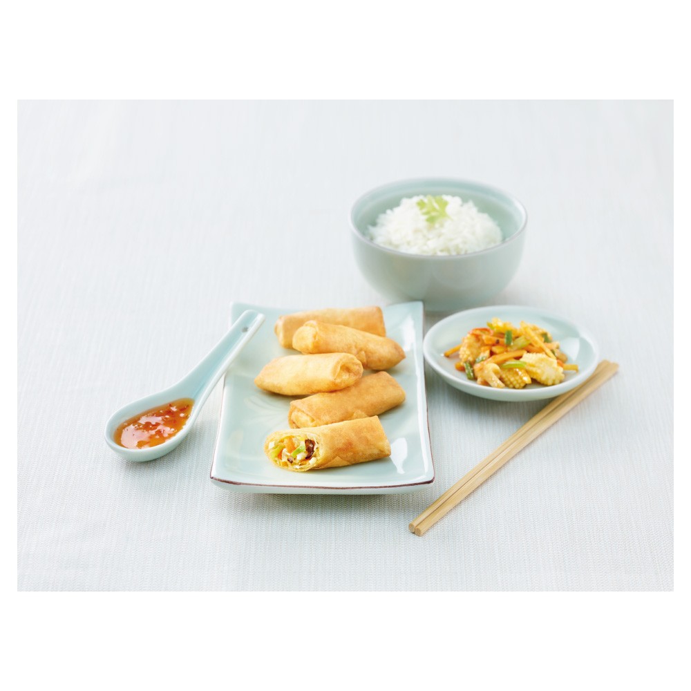 Chou blanc 26 %, carottes 19 %, eau, farine de BLÉ, huile de tournesol, poireau 4 %, germes de mungo 2 %, oignons 2 %, champignons oreilles de Juda, sel comestible iodé, ail séché, condiment en poudre, épices (avec MOUTARDE), sucre, oignons séchés, pâte d'ail (ail, sel comestible), huile de SÉSAME, épaississant: E 464