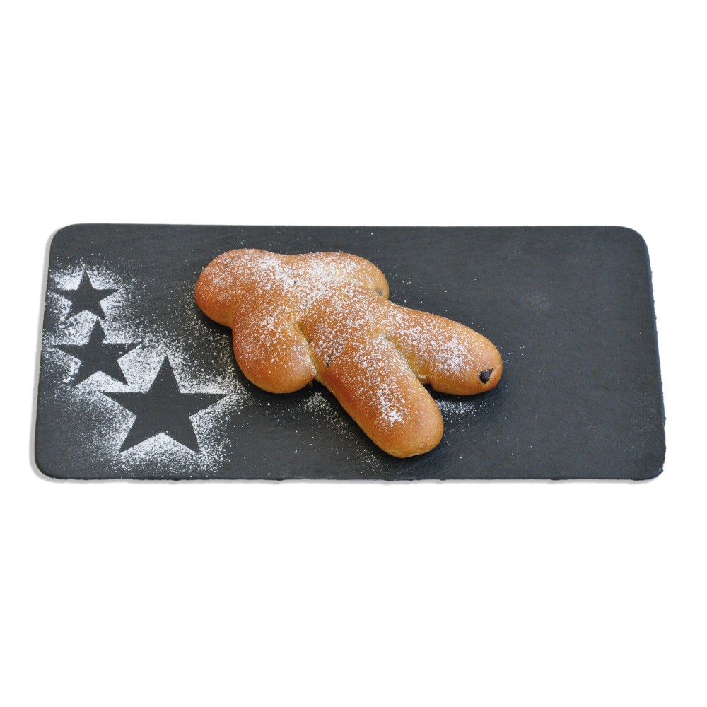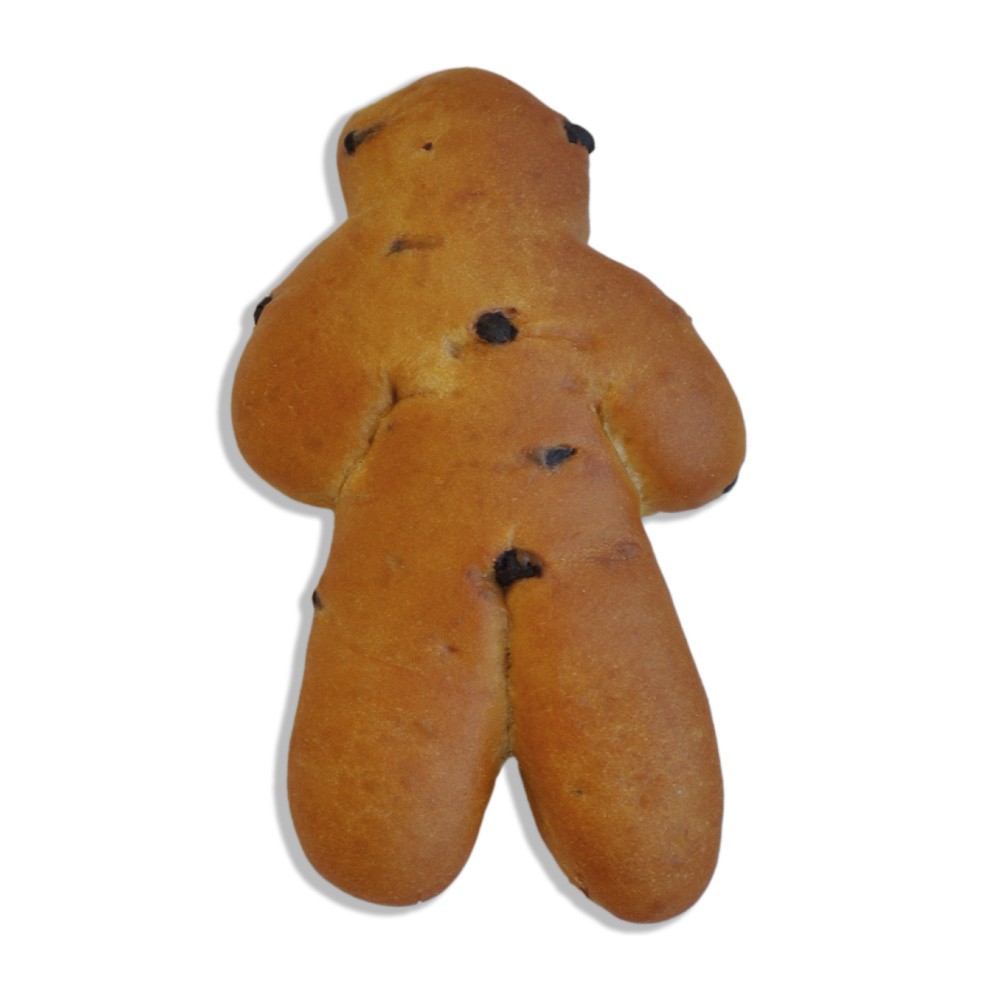 Petits pains en forme de petit bonhomme en pâte briochée aux pépites de chocolat.